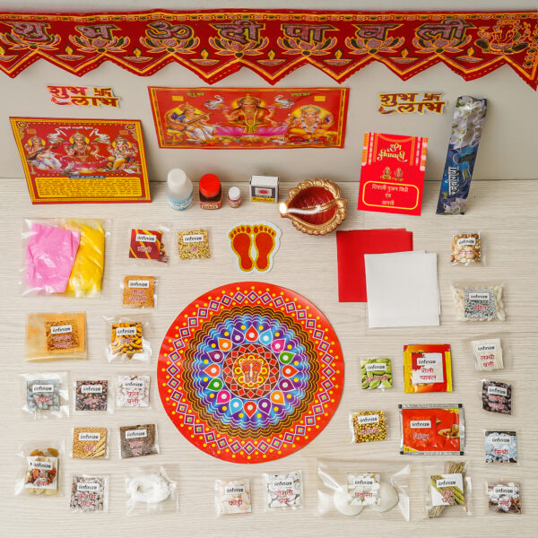 Celebrate Diwali with the Complete 41-Item iinfinize Pooja Kit – A thoughtfully curated combo set featuring all essential samagri for Ganesh Laxmi Poojan. Ideal for both home and office use, this kit ensures a complete and traditional Diwali worship experience. Perfect for gifting to loved ones during the festival of lights