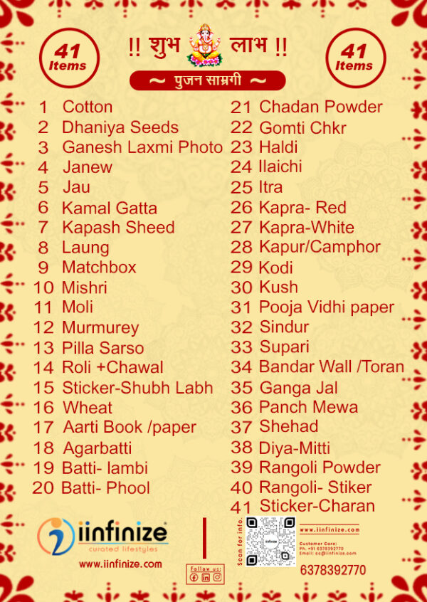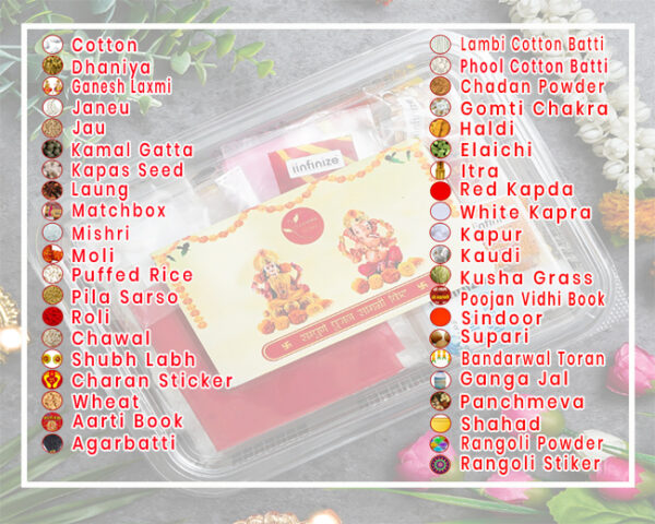 iinfinize Diwali Puja Kit 41 Items Ganesh Laxmi Poojan Samagri Sampuran Worship Kit Deepawali Festival Combo Set for Home & Office