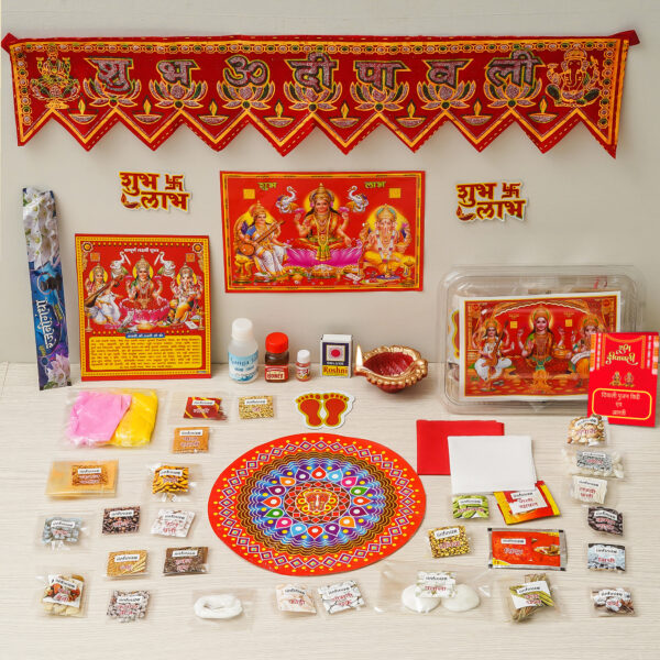 This Kit is known Diwali Pujan Set 41 items in One Packet A unique Diwali Pooja Kit that includes all essential items required to perform Diwali Pooja properly. Nicely packed in a box, this Diwali Pooja Kit is sure to appease the Goddess of wealth Maa Laxmi It Can be a nice Diwali gift to your near and dear ones. Complete Pooja kit for Diwali Pooja.